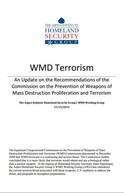 The bipartisan Congressional Commission on the Prevention of Weapons of Mass Destruction Proliferation and Terrorism (WMD Commission) determined in December 2008 that WMD terrorism is a continuing and serious threat. The Commission further concluded that it is more likely that terrorists would obtain and use a biological rather than a nuclear weapon. At the request of Homeland Security Secretary Janet Napolitano, the Aspen Homeland Security Group’s WMD Working Group (AWG) has considered the current terrorist threat associated with these weapons, U.S. readiness to address the threat, and proposals to strengthen preparedness.