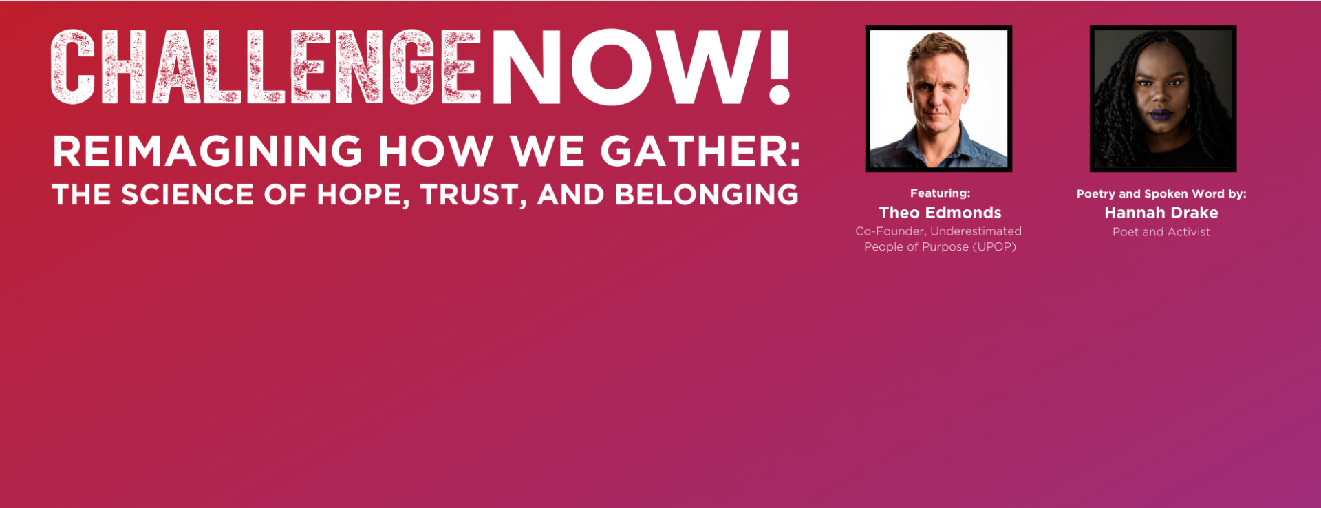 The cultural shifts and shocks of COVID-19 are forcing us all to reimagine how we gather to learn, work, and celebrate. Join the Aspen Challenge community in a virtual conversation with Theo Edmonds, a professor at the University of Louisville School of Public Health & Information Sciences and co-founder of public health startup, UPOP (Underestimated People Of Purpose), as he explores how the science of hope, trust, and belonging can guide us in creating a path forward. In this hour-long discussion—which will include an opportunity for the audience to ask questions and a special performance by poet Hannah Drake— Theo will demonstrate why one of the worthiest innovation challenges in the months and years ahead will be in creating new forms of Cultural Wellbeing in our places and spaces. Cultural Wellbeing is not about changing what came before, it’s about creating what comes next, together.
