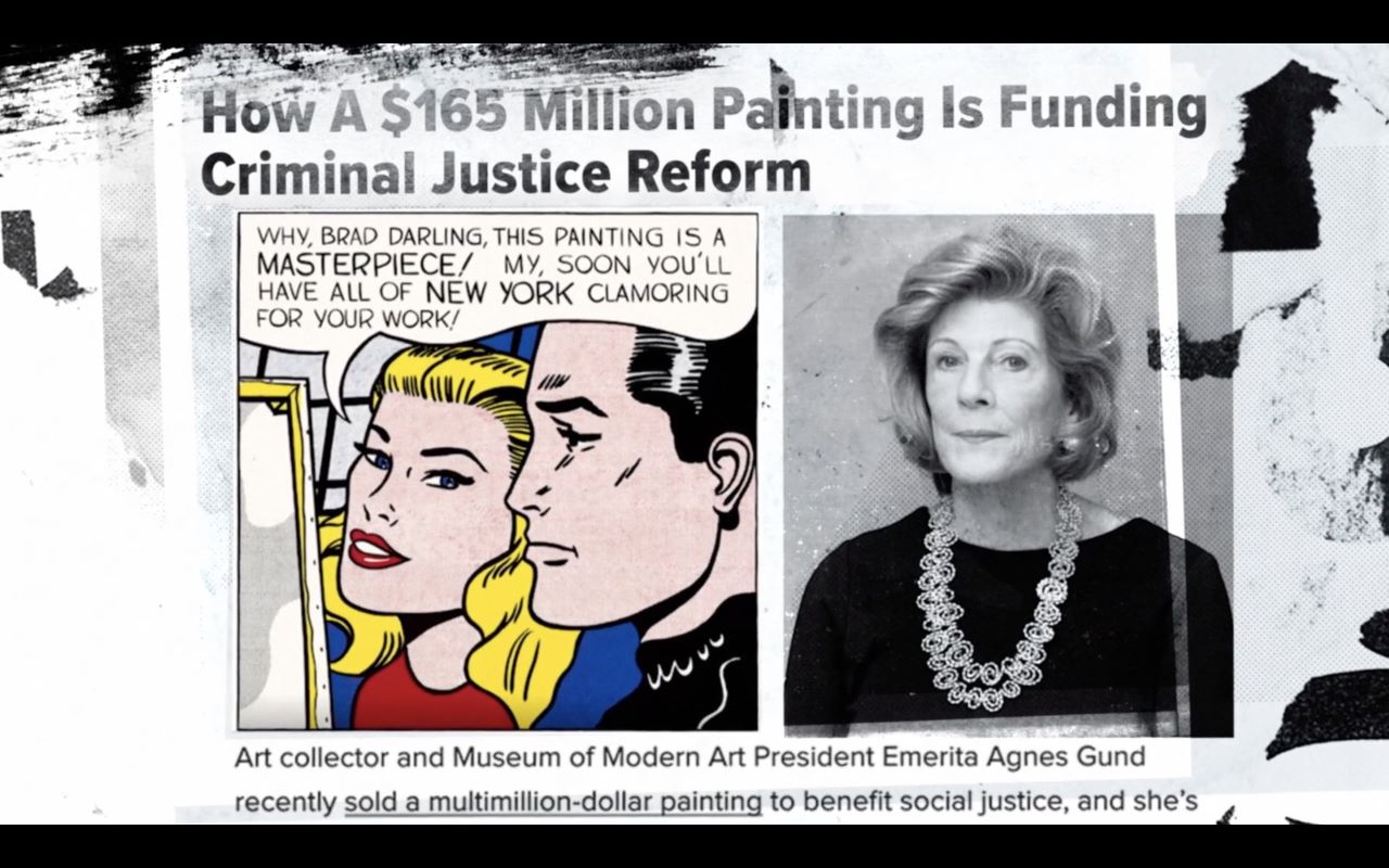 is a feature-length documentary that explores the nexus of art, race, and justice through the story of art collector and philanthropist Agnes “Aggie” Gund’s life. Emmy-nominated director Catherine Gund focuses on her mother’s journey to give viewers an understanding of the power of art to transform consciousness and inspire social change. Aggie is internationally recognized for her robust and prescient support of artists–particularly women and people of color–and her unwavering commitment to social justice issues. After falling in love with art as a high-school student, Aggie discovers a new way of looking at the world. The film opens with Aggie selling Roy Lichtenstein’s “Masterpiece” For $165 million to start the Art for Justice Fund. The proceeds from one of the highest grossing artworks ever sold fuel a monumental effort to reform the American criminal justice system and end mass incarceration. The film captures Aggie as a true maverick who demonstrates the unique role and potential of collectors and benefactors to use art to fight justice. This is untapped terrain, and we see Aggie leading the way. Click here to watch trailer.