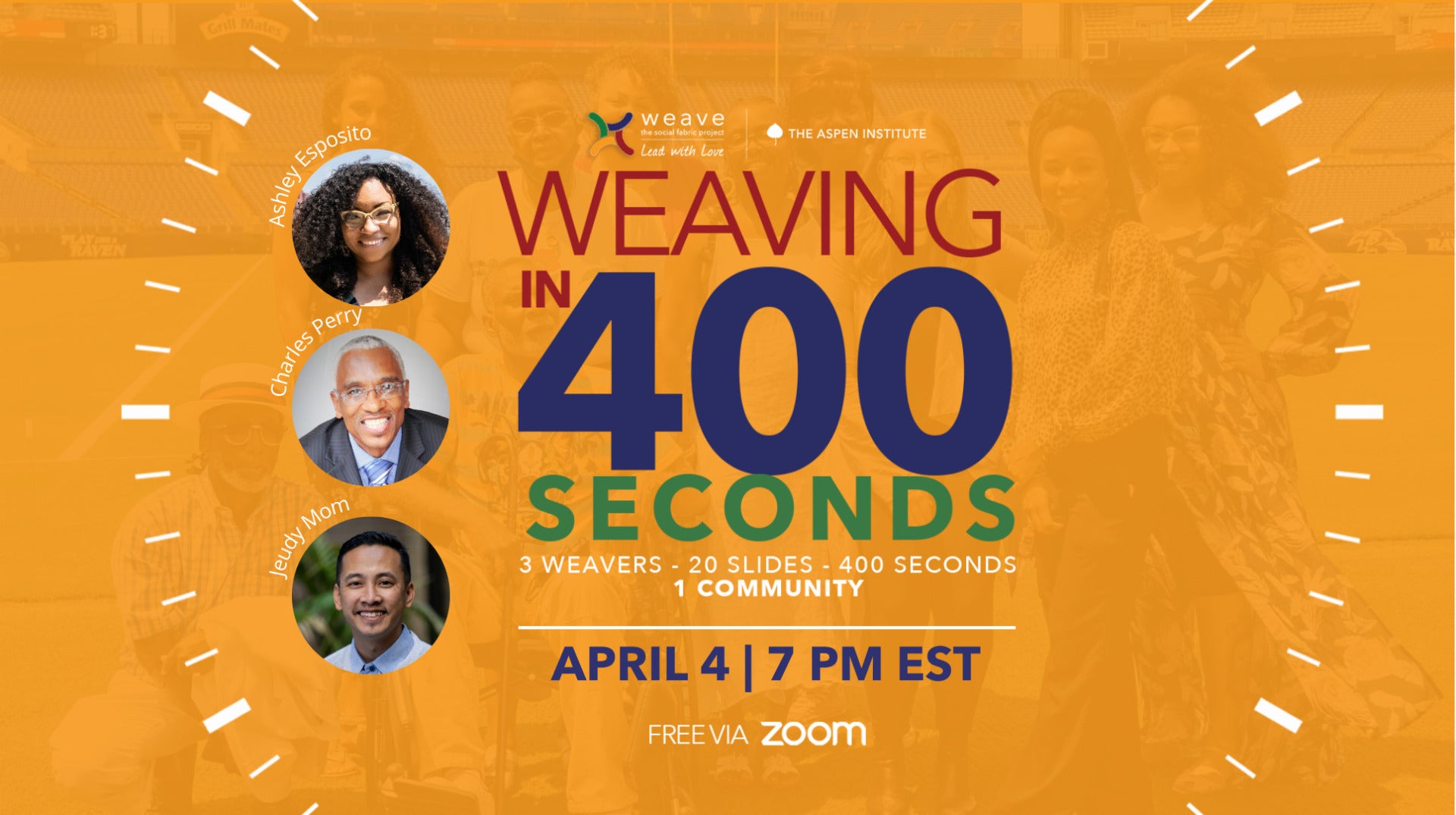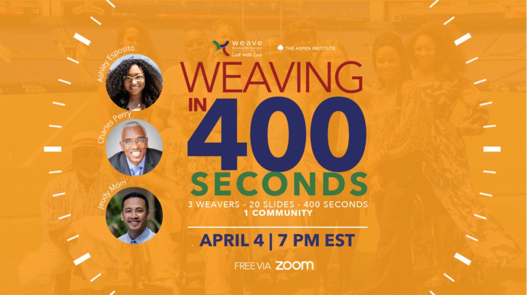 We call people who build social trust in their communities “weavers.” Meet three in these lightning talks, where they tell their stories with 20 slides and just 20 seconds on each.