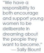 “We have a responsibility to both encourage and support young women to be deliberate in dreaming about the people they want to become,” Blount said of the phenomenon of women making up more than half of the student bodies in US colleges and universities, but remaining a fraction of the world’s CEOs, board directors, and government leaders.