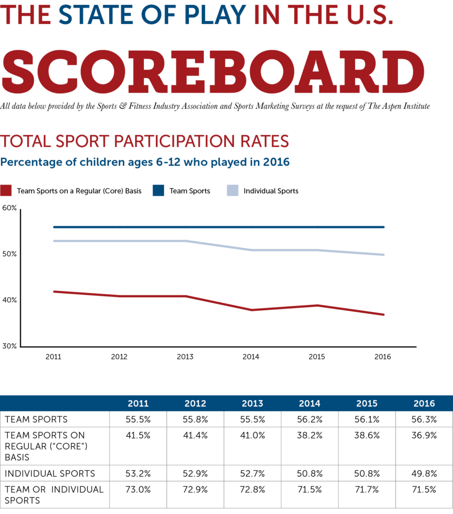 What follows are charts that speak to the challenges that Project Play 2020 will collectively try to address.