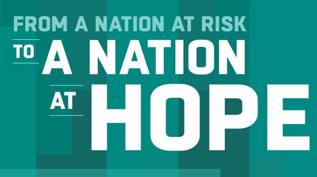 Thank you, Linda, for the introduction and good evening, everyone. I am honored to be here tonight for the release of this Commission’s final report, “From a Nation at Risk to a Nation at Hope.”