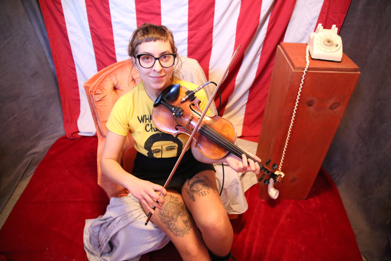 A neighbor performs for a day at the art peep show in Lancaster, PA. Photo credit: Michelle Johnsen
