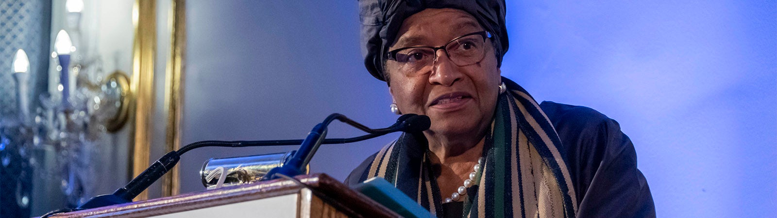 President Sirleaf spoke with Peggy Clark, executive director of the Aspen Global Innovators Group and host of The Bridge podcast, at an event recognizing Sirleaf as the 2018 Madeleine K. Albright Global Development Honoree for her leadership and breakthrough thinking on issues of international development and human rights.