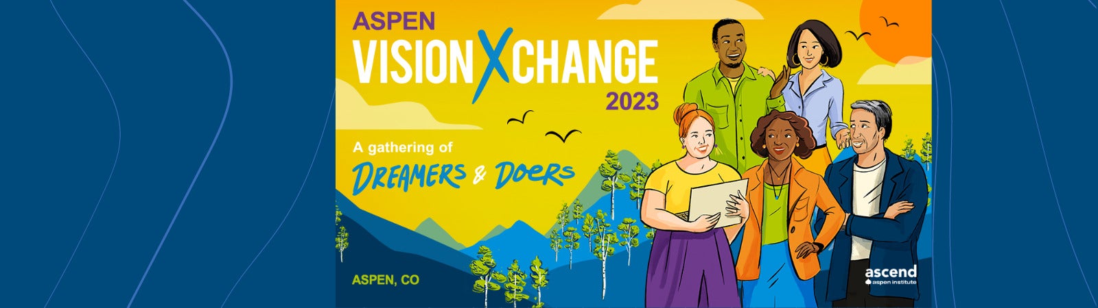 This summer, Aspen VisionXChange brings together visionary leaders to talk about reinventing systems of care, unlocking capital for economic inclusion, transforming approaches to mental and maternal health, reforming our justice system, and more. The first of its kind free public program takes place both on the Aspen Meadows campus in Colorado and via a free live stream.VisionXChange is hosted by Ascend at the Aspen Institute, a catalyst and convener building intergenerational family prosperity and well-being by focusing together on children and the adults in their lives. Ascend’s Fellowship and network of community organizations bring together hundreds of innovative and diverse leaders across the country who disrupt the status quo and co-create solutions. Driven by the core belief that leadership lies in all communities, Ascend reaches over 12 million families annually, particularly those most impacted by systemic inequities. The event is led by the work of Ascend Fellows, all of whom are doing innovative work to improve outcomes in their respective focus areas. Learn more from leaders around the country who are disrupting systems to reclaim ways for children to thrive, families to feel a deep sense of connection with each other and their communities, and all to have opportunities to prosper and be well..