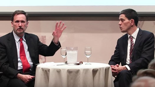 The program features an exploration of the Syrian refugee crisis with David Miliband, President and CEO of the International Rescue Committee and Professor Michael W. Doyle, the Director of the Global Policy Initiative at Columbia University.