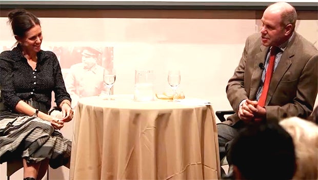 Julie Taymor, acclaimed director of films, musicals, and plays, speaks with entertainment-industry leader and Aspen Institute trustee Michael Eisner at the Roosevelt House Public Policy Institute on October 23, 2012.