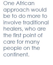 One African approach would be to do more to involve traditional healers, who are the first point of care for many people on the continent. While operating outside of traditional Western medical principles, traditional healers have strong bonds with local communities and could become important allies if they begin instructing people on ways to fight Ebola and to discard traditional practices which might help the virus spread. Though traditional healers have often been cited as part of the problem, if the situation is handled differently, they might be part of the solution.