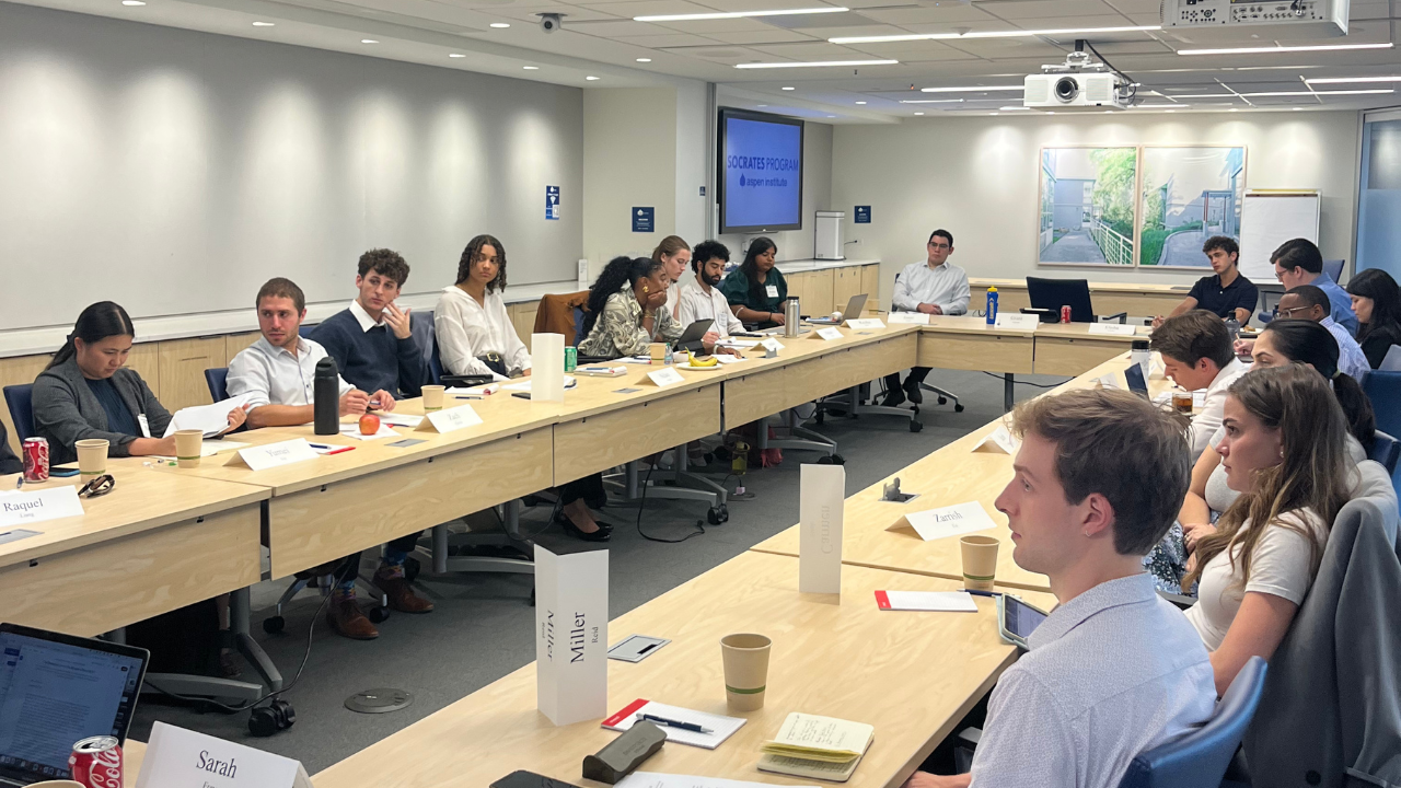 Aspen Institute Socrates Program invited college interns and recent graduates in D.C. for a seminar on disagreement, cancel culture, and holding space for complexity on campuses.
