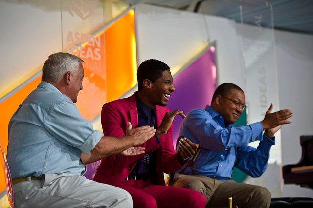 Pictured above (L-R): Walter Isaacson, Jon Batiste and Wynton Marsalis at the 2015 Aspen Ideas Festival during “The Genuis of Jazz” session. (Photo Credit: Riccardo Savi)