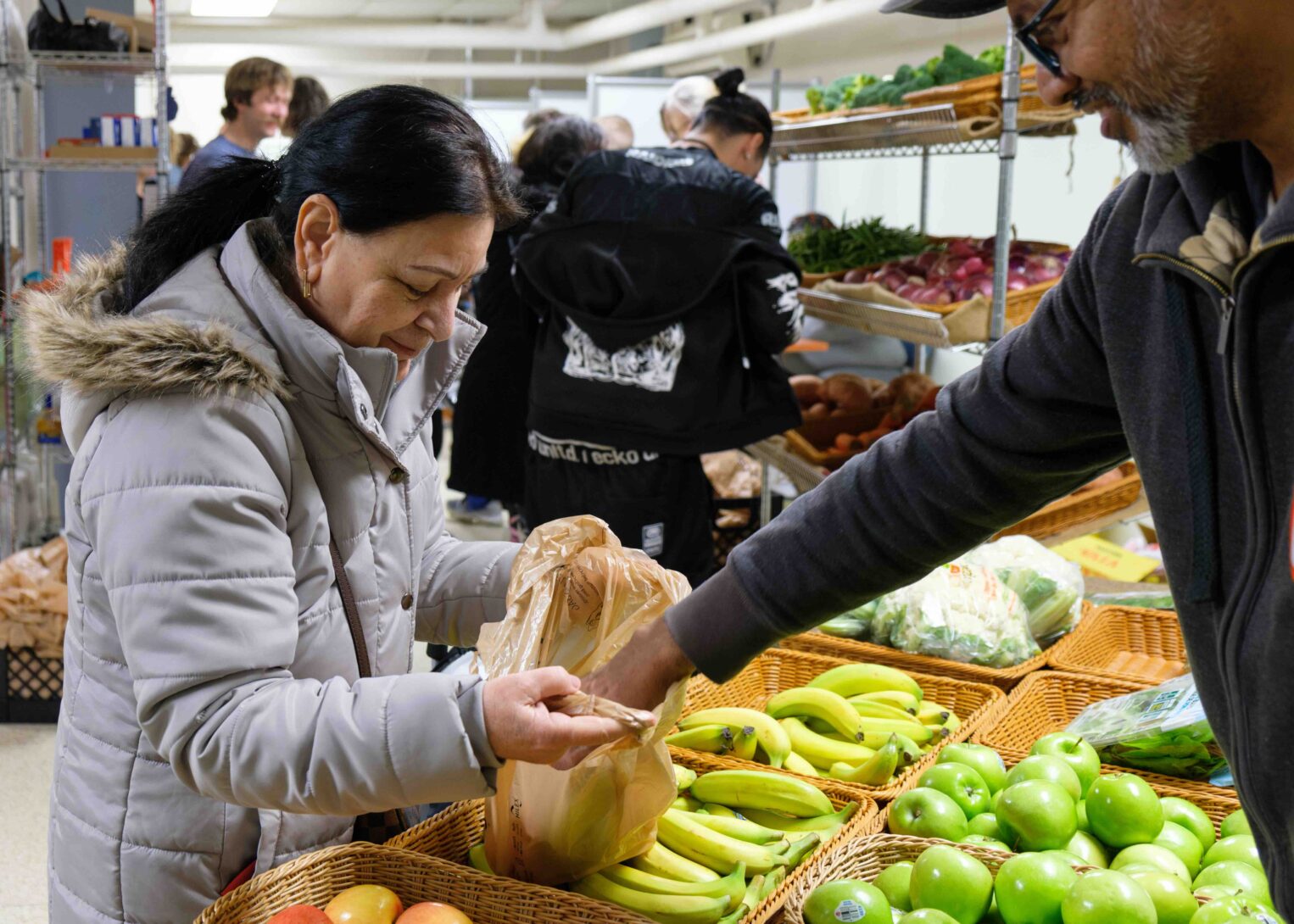 Kinship has about 200 volunteers. Up to 85% are a core group of passionate regulars and most have been coming for years. 40% of them are also shoppers. Only 10-15% of the volunteers are one-timers, who typically come from corporate partners or volunteer groups.