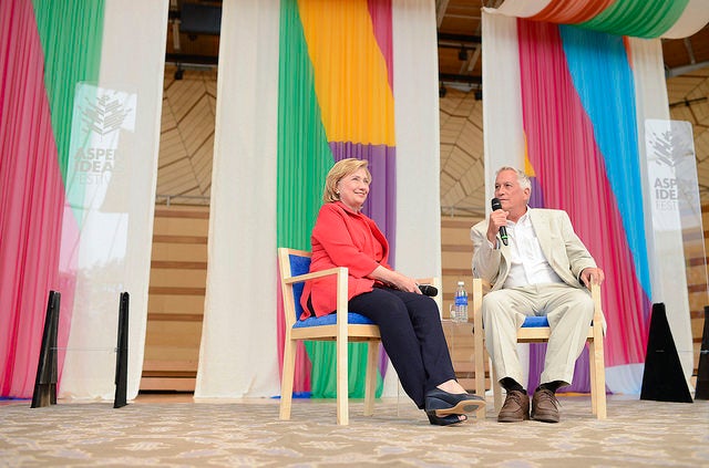 Aspen Institute President and CEO Walter Isaacson asked Clinton about the situation in the Middle East, including her decisions concerning Syria and the rise of ISIS. “We’ve seen this movie before,” Clinton said of ISIS. “We saw this in the post-Soviet withdrawal from Afghanistan. … There’s been so many bad political decisions made by Malaki and his supporters, so when you say can we sit by and watch Iraq and Syria disintegrate, it’s too soon to tell.”