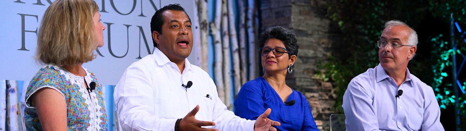 On Thursday evening, David Brooks, executive director at the Aspen Institute, Indrani Bagchi, diplomatic editor of the Times of India, and Felix Maradiaga, a leading human rights activist in Nicaragua, discussed how to become a courageous leader at the Resnick Aspen Action Forum. Their conversation was moderated by Kristen Grimm, founder and president of Spitfire Strategies.