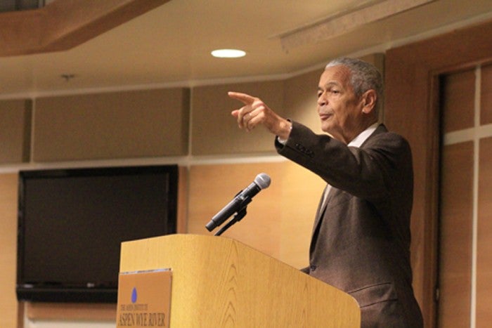 Former NAACP Chairman Julian Bond speaks to an audience of Aspen Wye Fellows at the Aspen Institute River House. Photo by George Hatcher