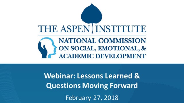 On February 27, 2018, the National Commission hosted a webinar highlighting six lessons learned from the past year. The webinar featured a conversation with practitioners who reflected on these lessons and provided examples from their daily work with students. Speakers included Pamela Moran, Ed.D., superintendent of Albemarle County Public Schools in Charlottesville, Va.; Christopher Poulos, Spanish teacher & instructional leader at Joel Barlow High School in Redding, Conn., and Connecticut’s 2007 Teacher of the Year; as well as Jonathan Raymond, president of the Stuart Foundation and former superintendent who provided insights from the community perspective. Panelists also addressed the questions and challenges the Commission will consider throughout 2018 as it works to better understand how to support students’ comprehensive learning and development.