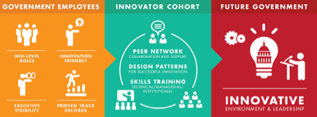 With these thoughts, the Government Innovator Cohorts concept was born (see video below). The program would support civil servants with a track record in driving public sector innovation. Ideally, fellows would be long-term civil servants that have both executive visibility and operational resources. Short-term political appointees would not be eligible, as they are typically installed to implement a new policy or mandate, and therefore likely to already have high-level support and ready resources.