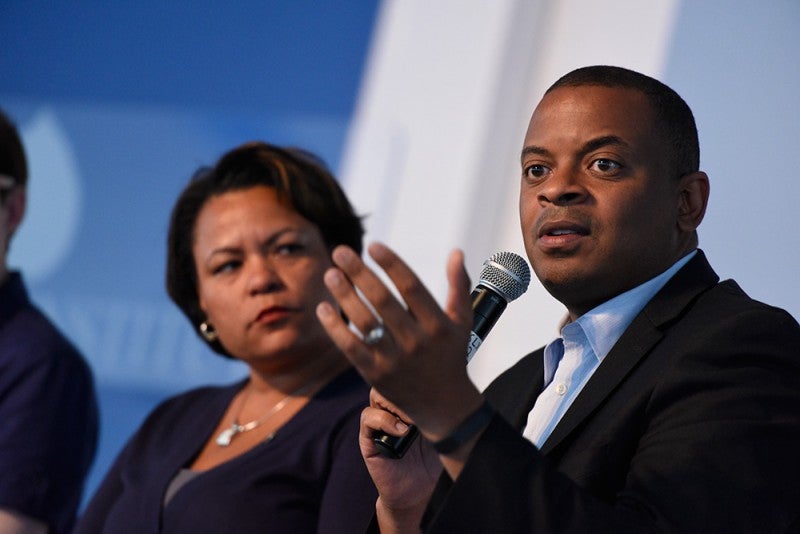 City of New Orleans Councilmember LaToya Cantrell and US Secretary of Transportation Anthony Foxx speak at the 2014 Aspen Action Forum.