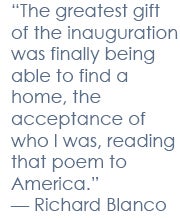 For Blanco, “the greatest gift of the inauguration was finally being able to find a home,” he said. “The idea that I was home all along, and the idea that all of our stories are the American story.”