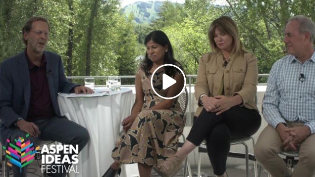 Aspen Institute President and CEO Dan Porterfield in conversation with the Aspen Institute’s Ida Rademacher, Mastercard’s Michael Froman, and Prudential’s Lata Reddy.