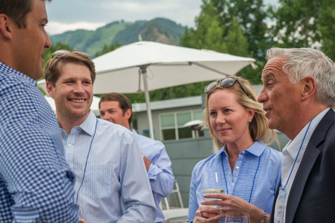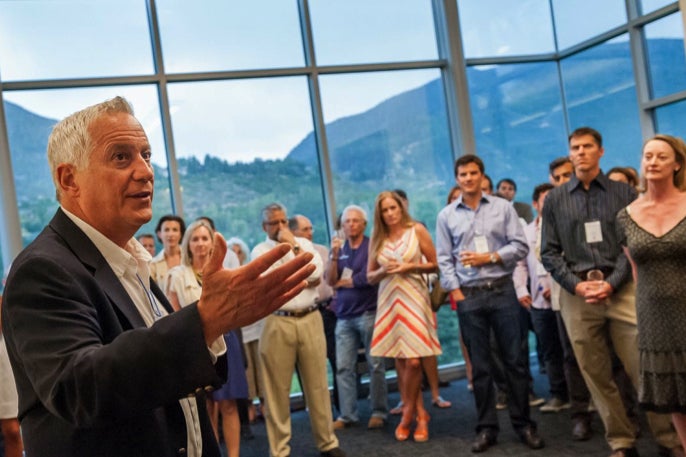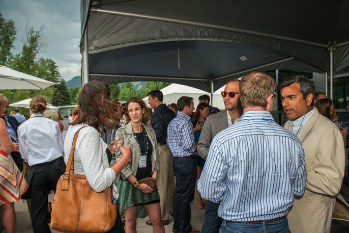 The Vanguard Chapter of the Society of Fellows, gathered July 11th on a stormy evening in Aspen for cocktails and remarks from Aspen Institute President and CEO Walter Isaacson. Fortunately, the rain held off as Fellows began the evening with drinks and appetizers on the Bass terrace.