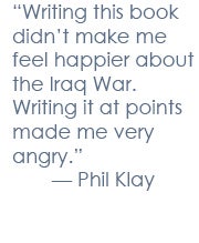 But Klay described the work as decidedly non-therapeutic. “I didn’t come back traumatized,” he said. “I came back with lots of questions and a lot of things that disturbed me to think about… Writing this book didn’t make me feel happier about the Iraq War. Writing it at points made me very angry.”