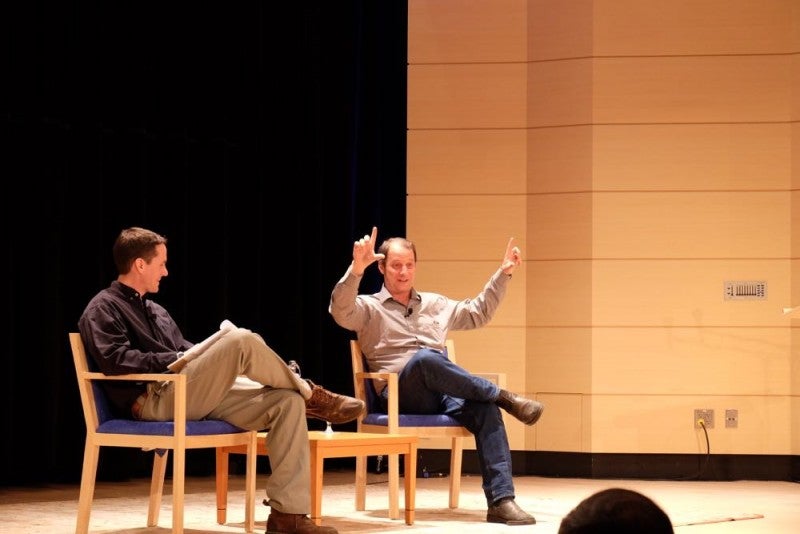 From left to right, Aspen Times reporter Andrew Travers with New Yorker staff writer George Packer. (Photo Credit: Barbara Dills)