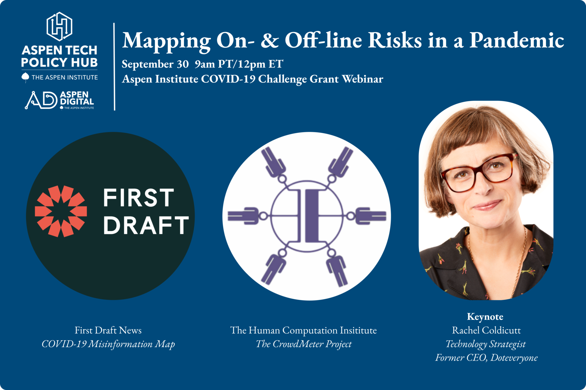 Join Aspen Tech Policy Hub Challenge Grantees as they showcase their projects focused on the theme: Mapping On- & Off-line Risks in a Pandemic. Following the presentations of the projects, technologist Rachel Coldicutt gave further remarks. The projects presented were: