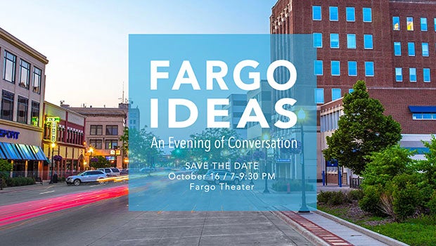 Inspired by the Aspen Ideas Festival, Fargo IDEAS will bring the Festival’s spirit of inquisitive discussion and the exchange of ideas to the Fargo-Moorhead region. Through an evening of moderated panels, local leaders will join Aspen Institute experts in conversation on a variety of topics. Fargo IDEAS is produced in partnership with the Aspen Institute’s “Aspen on the Ground” program, Folkways, and Emerging Prairie. Tickets at www.fargoideas.com.Inspired by the Aspen Ideas Festival, Fargo IDEAS will bring the Festival’s spirit of inquisitive discussion and the exchange of ideas to the Fargo-Moorhead region. Through an evening of moderated panels, local leaders will join Aspen Institute experts in conversation on a variety of topics. Fargo IDEAS is produced in partnership with the Aspen Institute’s “Aspen on the Ground” program, Folkways, and Emerging Prairie. Tickets at www.fargoideas.com.