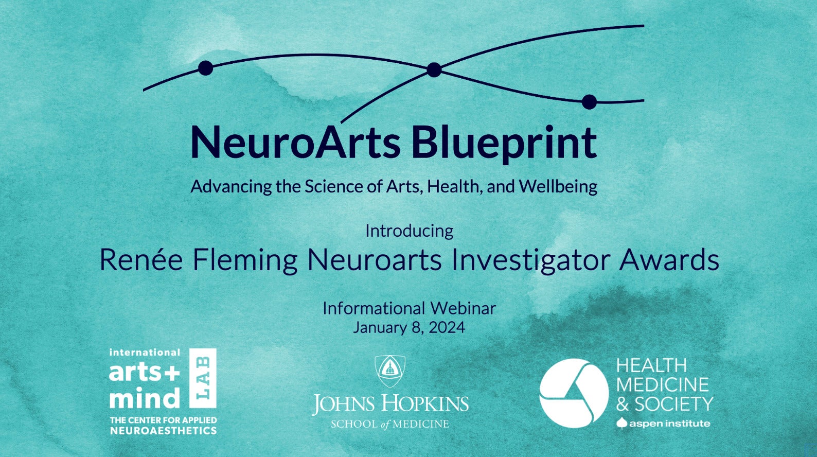 The Renée Fleming Foundation has joined forces with the Health, Medicine & Society’s NeuroArts Blueprint initiative to establish the Renée Fleming NeuroArts Investigator Awards. The awards will support both basic and applied research that expands the evidence base of the emerging field of neuroarts and furthers the mission of the Neuroarts Blueprint.