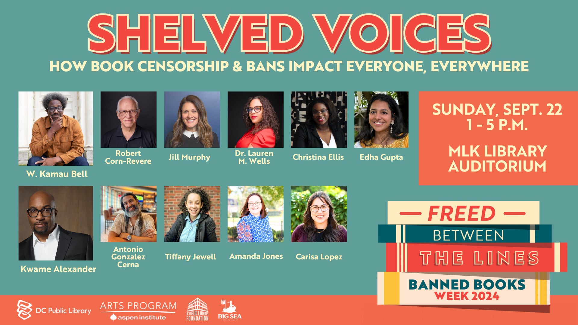 Banned Books Week was launched in 1982 in response to a sudden surge in the number of challenges to books in libraries, bookstores, and schools. The annual event highlights the value of free and open access to information and brings together the entire book community — librarians, educators, authors, publishers, booksellers, and readers of all types — in shared support of the freedom to seek and to express ideas.Join us on Sunday, September 22, 2024, as the Aspen Institute Arts Program in partnership with Kwame Alexander, W. Kamau Bell and the DC Public Library and DC Public Library Foundation presents, “Shelved Voices: How Book Censorship & Bans Impact Everyone, Everywhere,” at the Martin Luther King Jr. Memorial Library Auditorium in Washington, D.C. This program kicks off Banned Books Week 2024 with three segments exploring the history of book banning, the current state of literary access in the US, and how we might catalyze inspiration for protecting and expanding access to the written word for all readers. Featuring conversations with policy experts, librarians, authors, students, and advocates on the frontlines, this program highlights what’s happening in regions where censorship is both prominent and subtle. In-person attendees will also have an opportunity to submit questions during both panel sessions.
