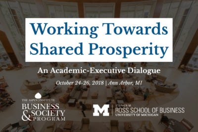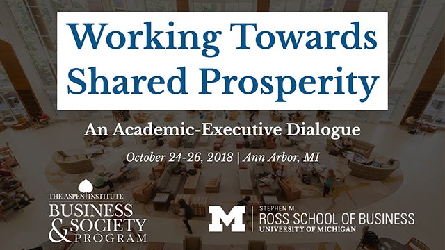 The University of Michigan’s Ross School of Business and The Aspen Institute’s Business & Society Program hosted Working Towards Shared Prosperity: An Academic-Executive Dialogue on the future of job creation, job quality and shared prosperity. Click here to view the full agenda.