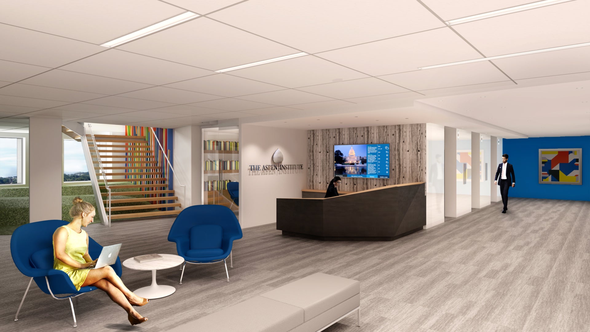 By the time you read this, the Institute will have moved to its new 90,000-square-foot Washington, DC, headquarters at 2300 N Street NW. After being divided across multiple floors in two buildings for many years, the staff can at last come together. Built by Davis Construction, the workspace was designed by OTJ Architects in a modernist Bauhaus style evocative of the Aspen Meadows campus in Colorado. A need to accommodate the Institute’s growth and offer a more collaborative work environment drove the decision to move. The mostly open workspaces will feature a Creative Ideas Lab, a café, and larger, enhanced event spaces. “Our new home symbolizes the Institute’s mission,” said outgoing CEO Walter Isaacson, “which has always relied on the power of place and the beauty of architecture to foster conversation and connections.”