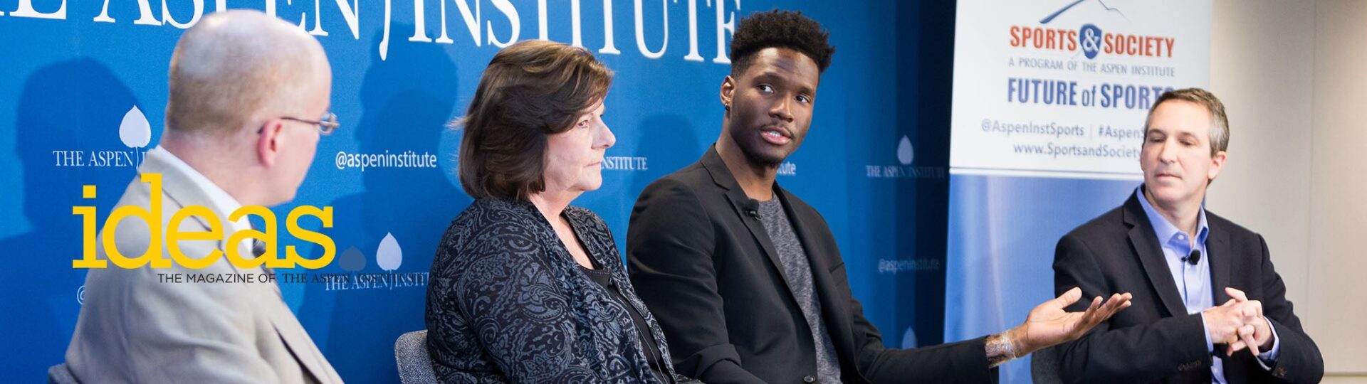 Participants in the Future of College Sports discussion also included Clemson Athletic Director Dan Radakovich, former Georgetown and Princeton men’s basketball coach John Thompson III, and Atlantic 10 Conference Commissioner Bernadette McGlade, all of whom debated the implications of NCAA athletes receiving compensation for their names and images through outside sponsorships. Thompson and Radakovich pointed out possible problems with players signing deals that conflict with their university’s own business contracts. For instance, an athlete who promotes Under Armour may be at odds with his or her college’s deal with Nike. Watch the discussion at as.pn/collegesportsfuture and read Jon Solomon, the Sports & Society Program’s editorial director, on the history behind the debate at aspeninstitute.org/pay-ncaa-athletes.