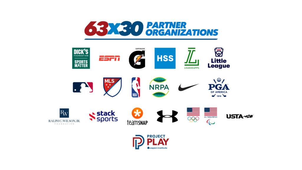 To help reach the 63% target, the Institute will convene and provide backbone support for a roundtable of leading sports, health and philanthropy organizations called 63X30 (pronounced “Sixty-Three by Thirty”). 63X30 partner organizations include: The DICK’S Sporting Goods Foundation, ESPN, Gatorade, Hospital for Special Surgery, LeagueApps, Little League Baseball and Softball, Major League Baseball, Major League Soccer, National Basketball Association, National Recreation and Park Association, Nike, PGA of America, Ralph C. Wilson, Jr. Foundation, Stack Sports, TeamSnap, Under Armour, the U.S. Olympic & Paralympic Committee, and U.S. Tennis Association.
