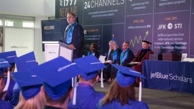 JetBlue recently celebrated the first graduates of its JetBlue Scholars program. JetBlue Scholars offers the airline’s crewmembers the opportunity to earn a fully-accredited associate or bachelor’s degree with JetBlue covering most of the cost. The program features high-quality online courses at a fraction of the cost of traditional college. This year, 50 crewmembers will earn a college degree through the newly-launched program.