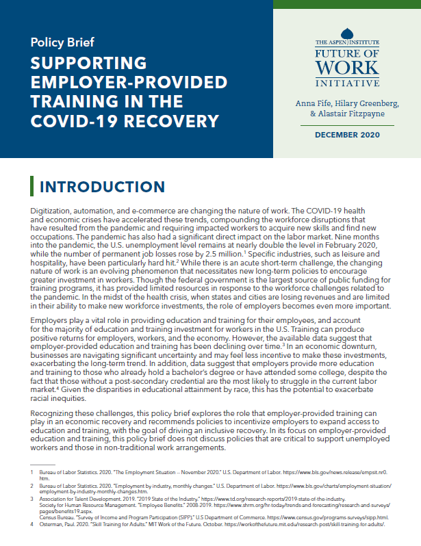 Supporting Employer-Provided Training in the COVID-19 Recovery