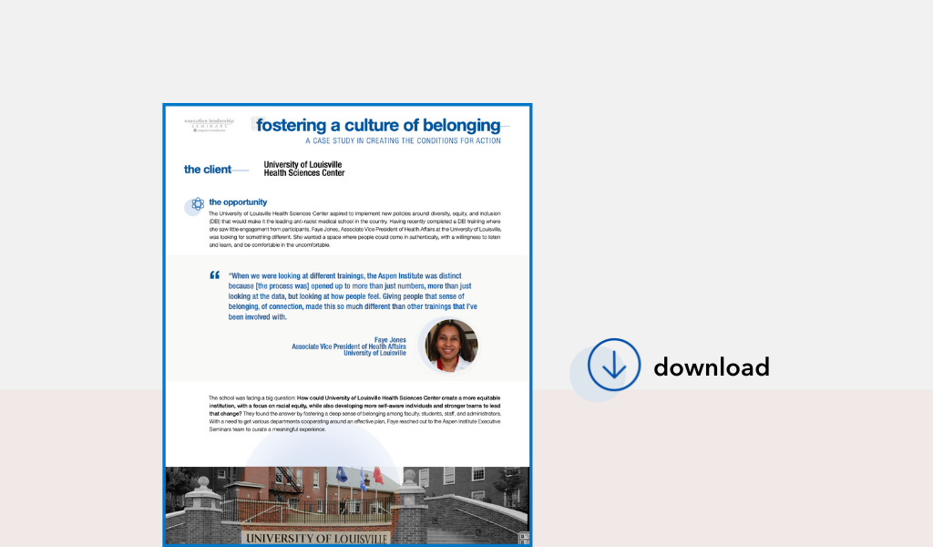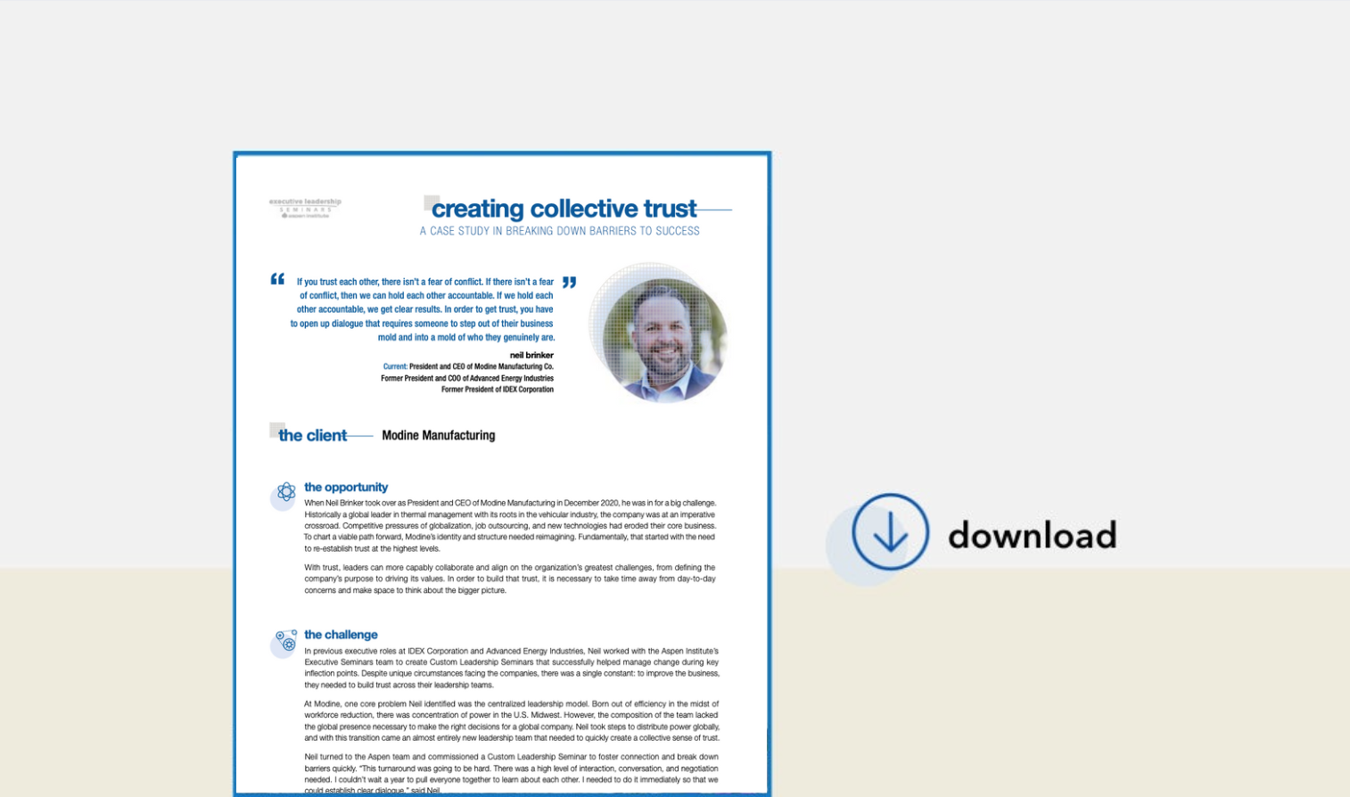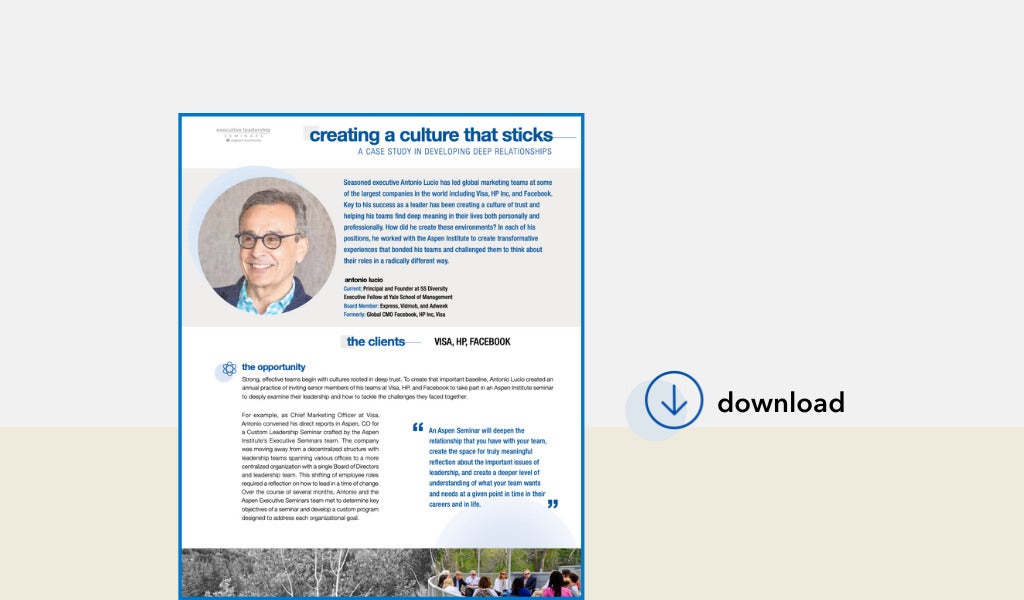 “An Aspen Seminar will deepen the relationship that you have with your team, create the space for truly meaningful reflection about the important issues of leadership, and create a deeper level of understanding of what your team wants and needs at a given point in time in their careers and in life.”