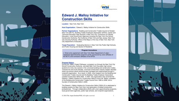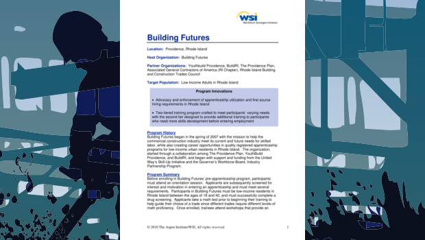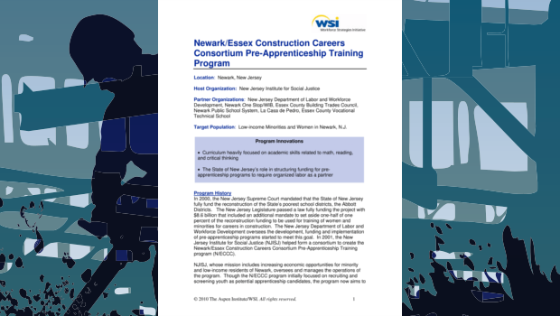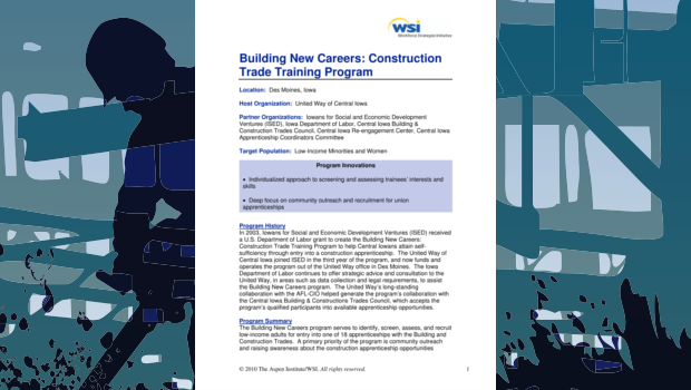 This document is a profile of a construction pre-apprenticeship program and provides information about the program’s history, training design and curriculum, funding, partners and industry engagement.
