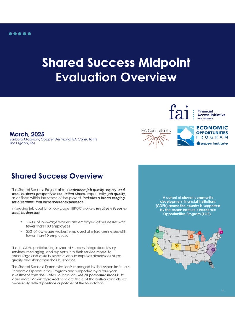 This Q&A provides insights and lessons from the work of 11 CDFIs that participated in Shared Success, a job quality demonstration led by the Aspen Institute Economic Opportunities Program (EOP).