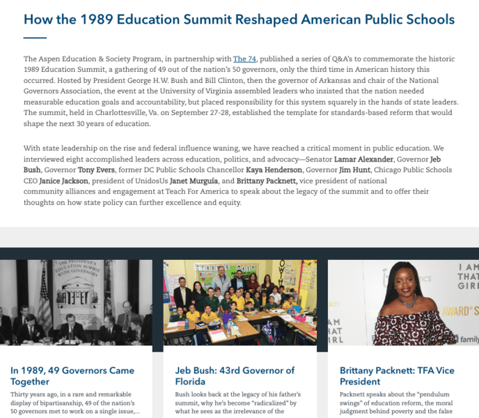 The Aspen Education & Society Program convened a broad bipartisan group of stakeholders to create new resources for policymakers, parents and students to design and implement effective, research-based education policy.