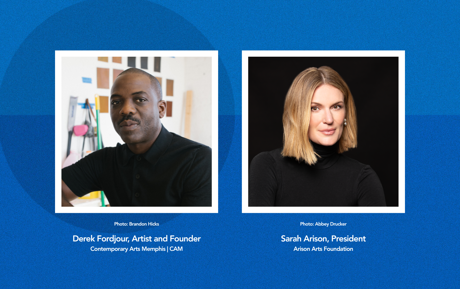 Over 70 AEF leaders gathered on September 4, 2025, at Independent 20th Century art fair in NYC for a special program featuring a conversation with artist Derek Fordjour and Sarah Arison, President, Arison Arts Foundation during which the two reflected on the topic of artists, legacy, and philanthropy. In 2024, Fordjour founded Contemporary Arts Memphis | CAM with a goal to expand opportunities for aspiring young artists in his hometown. A four-week, intensive summer fellowship for Memphis area high school students, the program provides fellows with studios and materials and three weeks of college-level instruction, followed by a week in New York City to visit artists’ studios, art museums and galleries, and university visual art departments, all with an aim to inspire these future artists as well as to educate them about potential professional pathways in the visual arts. Fordjour warmly credited Arison, who chairs the board of Young Arts, a nonprofit founded in 1981 by her family with a mission to identify and support exceptional young artists, as an important mentor in his work with CAM.