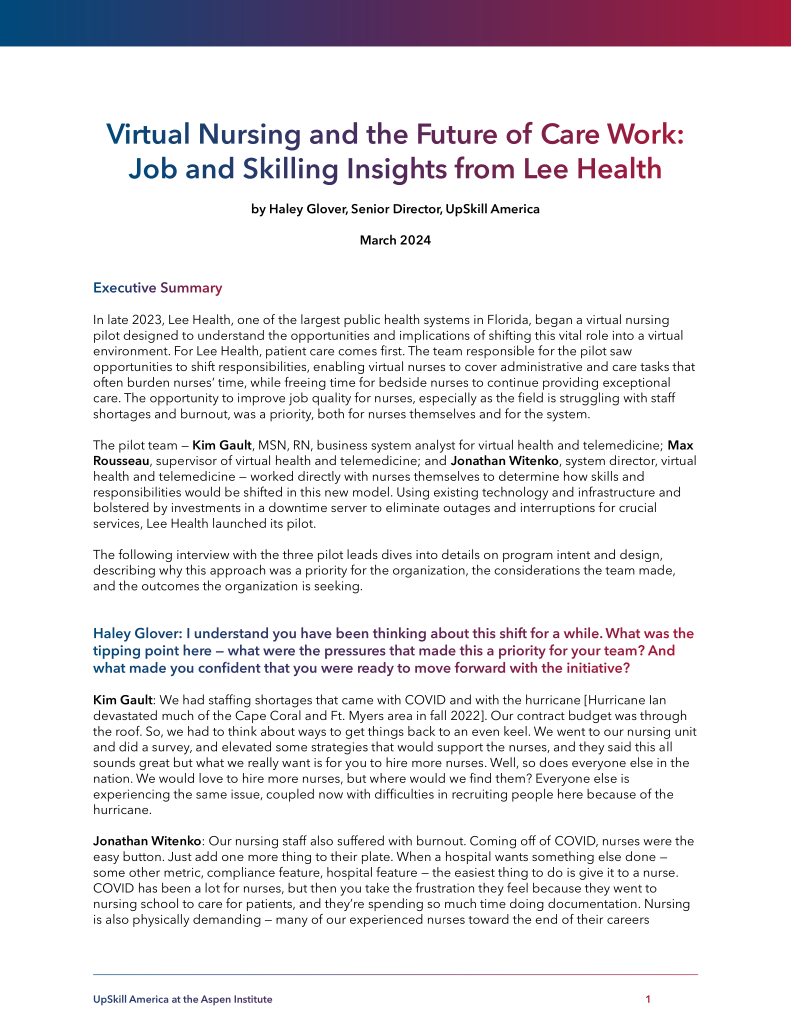 UpSkill America, an initiative of the Aspen Institute Economic Opportunities Program, supports employers and workforce organizations to expand and improve high-quality educational and career advancement opportunities for America’s front-line workers.