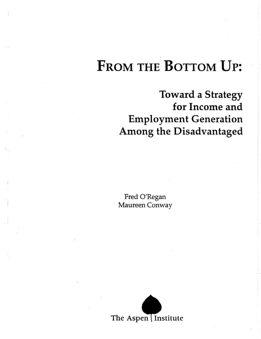 From the Bottom Up: Toward A Strategy for Income and Employment Generation Among the Disadvantaged
