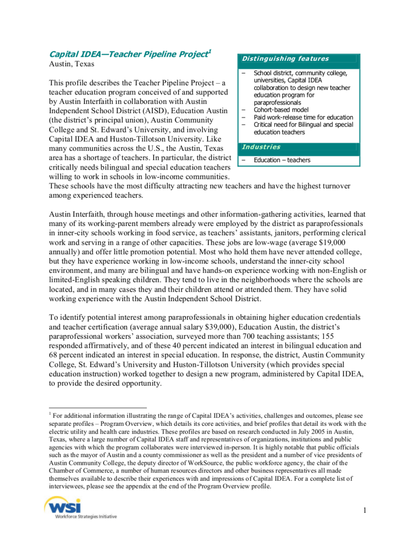 Capital IDEA – Teacher Pipeline Project (Austin, Tex.)
