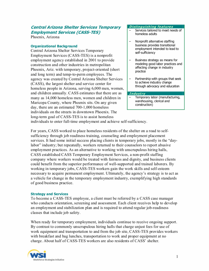 Central Arizona Shelter Services – Temporary Employment Services (Phoenix, Ariz.)