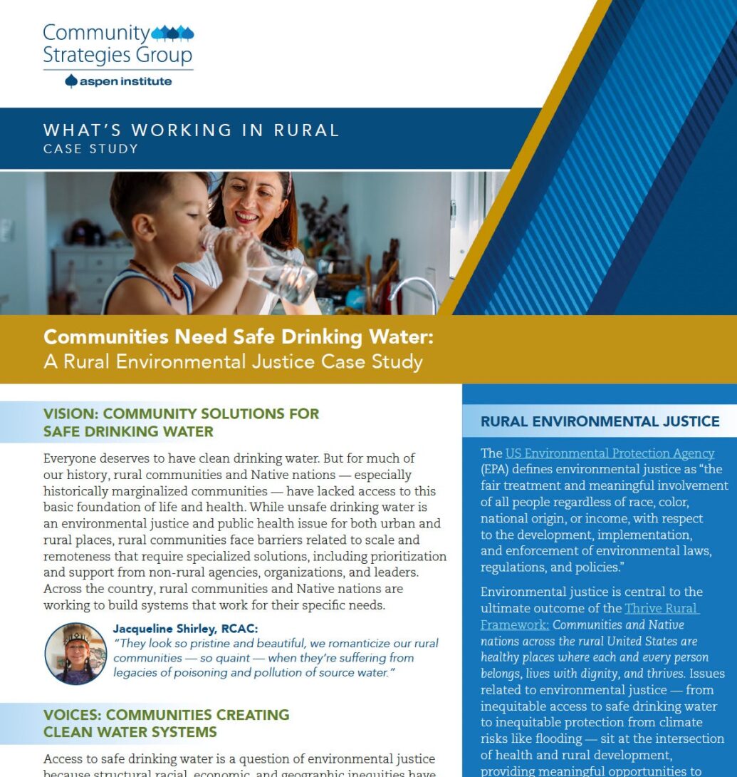 Everyone deserves to have clean drinking water. But for much of our history, rural communities and Native nations — especially historically marginalized communities — have lacked access to this basic foundation of life and health. While unsafe drinking water is an environmental justice and public health issue for both urban and rural places, rural communities face barriers related to scale and remoteness that require specialized solutions, including prioritization and support from non-rural agencies, organizations, and leaders. Across the country, rural communities and Native nations are working to build systems that work for their specific needs.