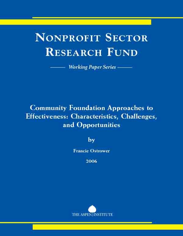 Community Foundation Approaches to Effectiveness: Characteristics, Challenges, and Opportunities