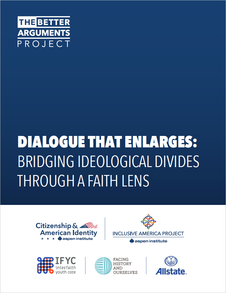 The Dialogue that Enlarges workbook was created in partnership with The Better Arguments Project and Interfaith Youth Core.