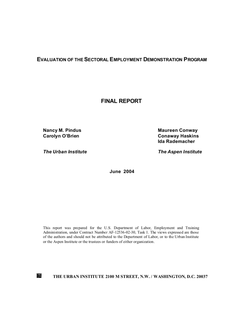 This report, a collaborative effort between the Urban Institute and WSI, documents the range of projects undertaken and the outcomes achieved by the 38 Workforce Investment Boards (WIBS) participating in the U.S. Department of Labor’s Sectoral Employment Development Demonstration project. The demonstration included 26 formation grants and 12 implementation grants. The evaluation report discusses grantee strategies and progress in using the sector approach to engage local businesses and meet their needs, to identify and address needs of specific segments of the labor force, and to support the overall health of the targeted sector. The report notes the diversity of local workforce structures and the fit of the sector approach with the WIB system, and concludes with implications for program operators and policy makers. The report is accompanied by a separate volume that profiles the work of each of the grantees.